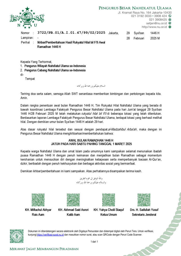 Nahnutv.com Yogyakarta — Pengurus Lembaga Ta’mir Masjid Nahdlatul Ulama (LTMNU) PWNU Daerah Istimewa Yogyakarta (DIY) telah merampungkan rekapitulasi sementara masjid-masjid NU yang akan menyelenggarakan Sholat Idul Fitri 1447 H. Pelaksanaan sholat ied ditetapkan pada 1 Syawal 1447 H, bertepatan dengan Sabtu, 21 Maret 2026, sebagaimana ikhbar dari Pengurus Besar Nahdlatul Ulama dan hasil sidang isbat…