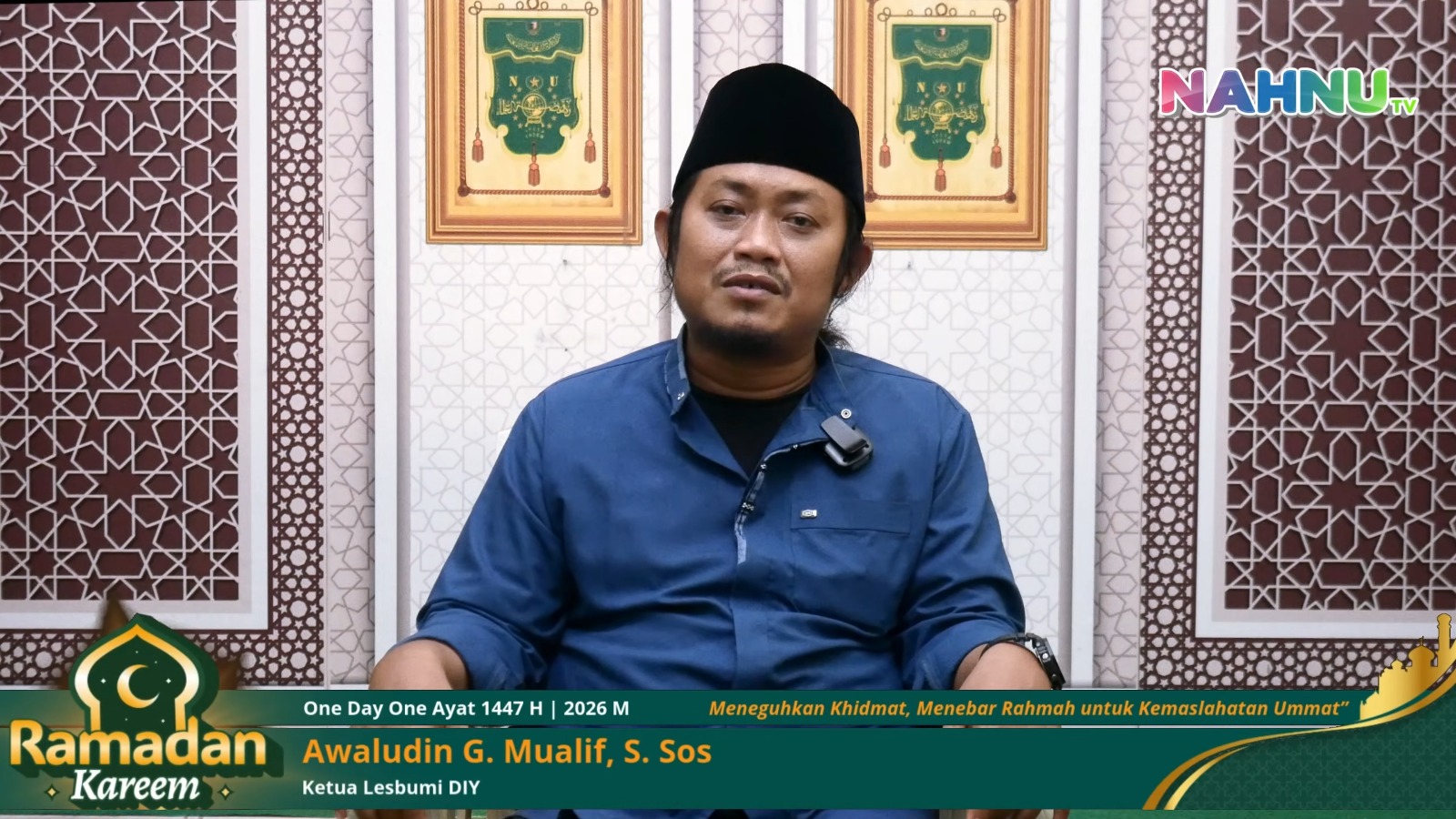Nahnutv.com Yogyakarta – Dalam program One Day One Ayat Ramadan 1447 H / 2026 yang diselenggarakan PWNU DIY melalui Nahnu TV, Ketua LESBUMI PWNU DIY Awaludin G. Mualif atau yang akrab disapa Gus Awaludin menyampaikan refleksi keagamaan tentang pentingnya menjaga lisan dan membersihkan hati selama bulan suci Ramadan.