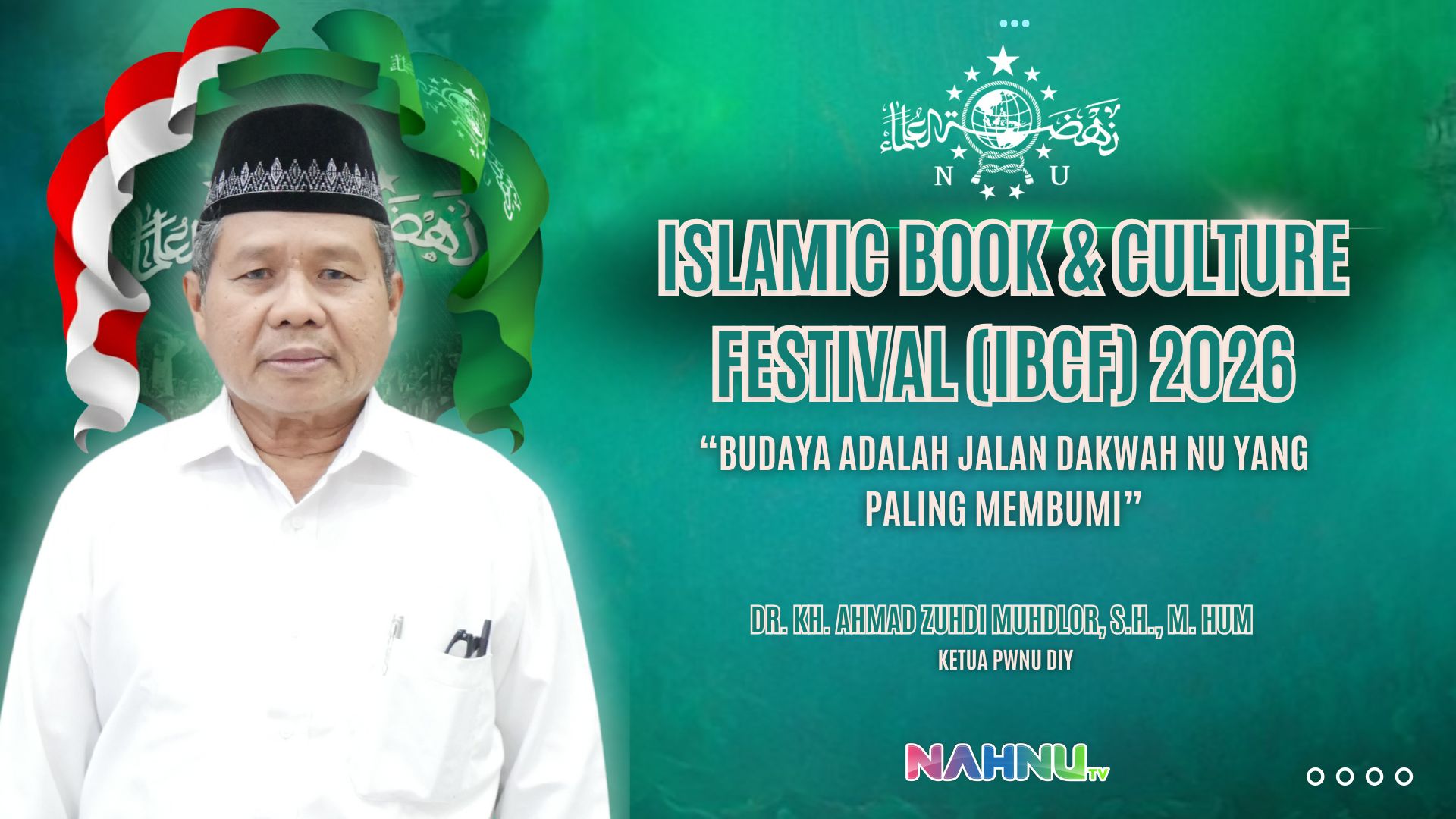 Nahnutv.com Yogyakarta — Ketua Pengurus Wilayah Nahdlatul Ulama (PWNU) Daerah Istimewa Yogyakarta, KH Ahmad Zuhdi Muhdlor, S.H., M.Hum., menegaskan bahwa pendekatan budaya merupakan strategi dakwah paling khas dan paling membumi yang dimiliki Nahdlatul Ulama (NU). Hal tersebut disampaikannya saat membuka secara resmi Islamic Book & Culture Festival (IBCF) 2026 yang digelar di The Ratan Yogyakarta, Jalan Ringroad Selatan, Panggungharjo, Sewon, Bantul, Selasa (27/1/2026).