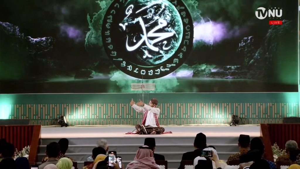 Penampilan ini dimulai dengan sholawat pendek “Allahumma Shalli Wa Sallim Wa Barik Wasalim” yang dijawab dengan lantunan “Shollu Alaih”. Kemudian, tembang Yo Sayyid mengalun, dengan lirik khas Jawa yang menggambarkan kedekatan antara Allah Sang Pencipta dengan utusan-Nya. Para penembang berkostum Jawa, lengkap dengan blangkon dan jarik, diiringi alat musik tradisional seperti kendang, kempul, dan gong.